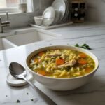 Homestyle Chicken Noodle Soup that tastes like childhood. This comforting recipe brings warmth with tender chicken, rich broth, and soft noodles.