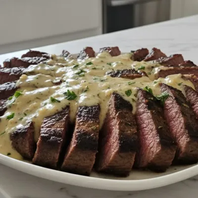 7. Serve Steak: Slice the rested steak against the grain. Generously spoon the finished creamy garlic sauce over each slice. Garnish with more fresh parsley for an Indulgent Juicy Steak with Creamy Garlic Sauce. Enjoy!
