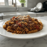 - Finally, add the drained pasta directly into the skillet with the sauce. Toss everything together until every single piece of pasta is coated in that rich, creamy, meaty goodness. Taste and adjust seasonings maybe a little more salt, pepper, or even a dash more red pepper flakes if you’re feeling bold! Garnish with fresh chopped parsley if you have it (it adds a lovely pop of color and freshness). Serve immediately and watch it disappear. It should look saucy, feel hearty, and taste like pure comfort.