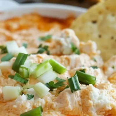 - Garnish & Serve: Garnish your delightful Creamy Cottage Cheese Buffalo Chicken Dip with fresh chopped green onions and crumbled blue cheese. Serve immediately with your favorite dippers for a satisfying, high-protein snack!