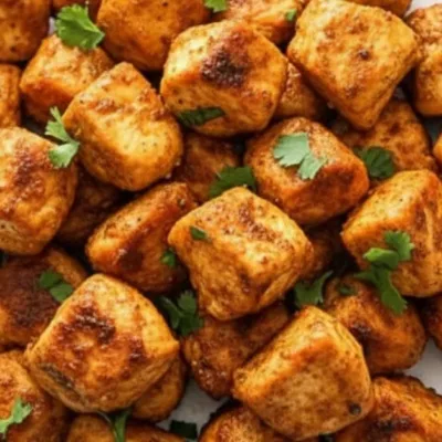 5. Rest & Garnish: Once cooked, transfer the crispy chicken bites to a serving platter. Let them rest for a couple of minutes to retain juiciness. Sprinkle fresh chopped parsley over the top for a burst of color and flavor.