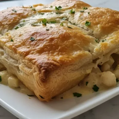 Serve warm with a crisp green salad or steamed vegetables to balance the rich, creamy filling.