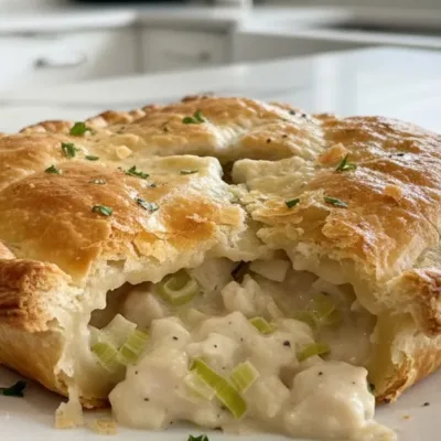 - Assemble Pie: Preheat your oven to 200°C (392°F). Line a 9-inch pie dish with one chilled puff pastry sheet. Spoon in the chicken and leek filling. Top with the second pastry sheet, crimp the edges, and cut steam vents. Brush with beaten egg.